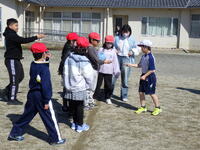 11日の業間に今年度最後のなかよしタイムがありました。6年生と遊べるのも最後です。始めに、なかよし班のプレートを6年生から5年生にしっかりと引き継ぎました。