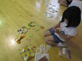 「しぜんとなかよし」では、葉っぱを髪飾りにしたり石を並べたりして、自然とふれ合う活動を楽しみました。