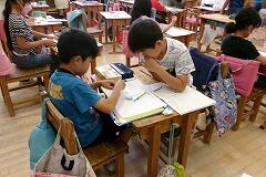 一人でノートを使って考えたり、二人で協力したり、おはじきを使って考えたり等、意欲的に学んでいました。