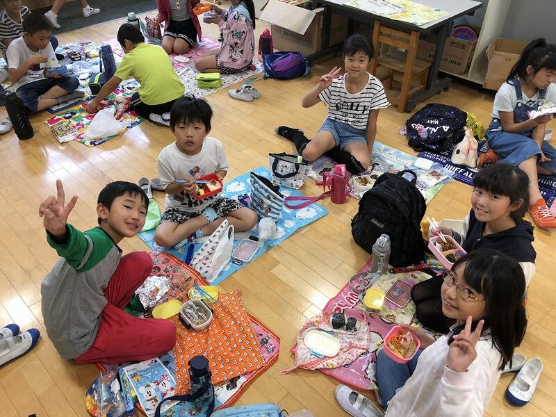 残念ながら雨が降ってきてしまったので、お弁当は学校で食べました。