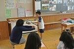 10月30日に,給食センターの栄養士の先生が来校し,1年生に, 食育の授業をしてくださいました。テーマは,「給食ができるまで」。写真や給食センターで実際に使っている器具を用いて,一年生にもとてもわかりやすく教えてくださいました。