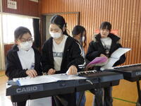 6年生は、楽譜を指で追ったり拍子をとったりしながら、1対1で親身になって5年生に教えていました。5年生も、真剣な表情で6年生からのアドバイスを吸収しようとしていました。