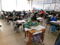 今日は、これまでの学習の成果を確かめるための学力テストを実施しました。どのクラスも自分の力が精一杯発揮できるよう、緊張感をもって集中して取り組んでいました。よく頑張りました花丸