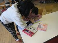 6年生は、楽譜を指で追ったり拍子をとったりしながら、1対1で親身になって5年生に教えていました。5年生も、真剣な表情で6年生からのアドバイスを吸収しようとしていました。