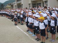 大平中生活委員会の3年生が、登校前に母校の大平西小であいさつ運動を行いましたせっかくの機会なので本校の計画委員も一緒に行いました