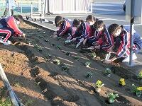 たくさんの生徒が協力してくれたので、100株のパンジーもあっという間に植え付けできました。
