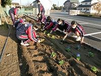 校内にパンジーやビオラの花を植えました。活動したのはボランティアで花の植え付けを希望した生徒です。