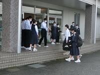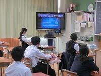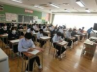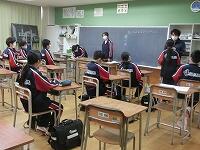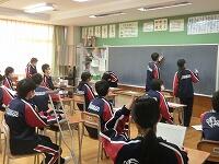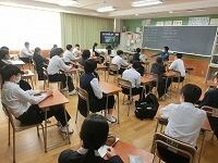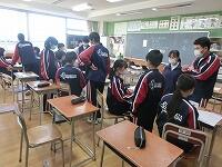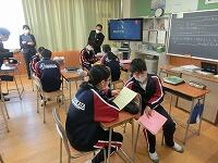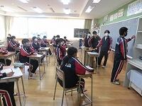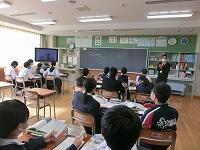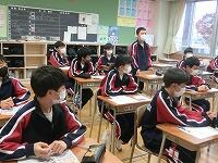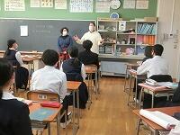 【授業参観】各クラス道徳の授業を行いました。1年生は「自分の知らない自分」(自己理解、相互理解)、2年生は「SNSとどう向き合う」(希望と勇気、克己と強い意志)、3年生は「旅立ちの日に」(よりよい学校生活、集団生活の充実)です。普段は自教室で授業を行っていますが、参観にあたり、コロナ感染予防対策として3密を避けるため、特別室を会場にしたり、教室内のようすをモニターで廊下でも参観できるようにしたりしました。