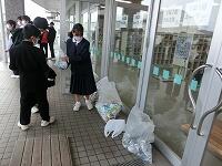 【リサイクル活動の様子】学級委員や生徒会役員が回収を呼びかけています。