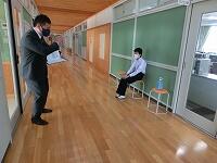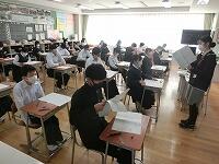 3年生は、栃木市中学校英語コミュニケーション・チャレンジを行いました。普段本校に勤務しているALTの先生ではなく、初めて会うALTの先生と英語で会話をするスピーキングテストです。生徒は先生と1対1で話をします。入室前は緊張した面持ちでしたが、英語でしっかりと伝えていました。