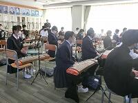 邦楽教室が行われました。にしかた箏の会(アシストネット)の皆さんによる学習支援をうけて、箏の演奏に挑戦しました。箏は一人に対して1面ずつ準備しました。箏の弾き方の基本を学んだ後、「さくら」の主旋律と伴奏を練習して、クラス全体で合奏しました。とてもすばらしい演奏ができました。