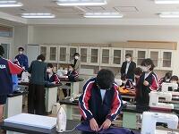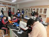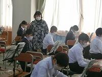 2年生家庭科では、ミシンボランティアの方(アシストネット)に作業の支援をしていただいています。