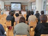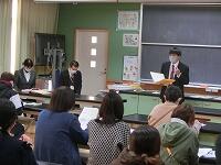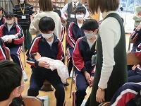 実際に生後間もない赤ちゃんの人形を抱く体験をして、「意外と重いのでびっくりした。」「首が動いてしまうので緊張した。」などの感想がありました。生まれて間もないうちは、何回も授乳することや排便、睡眠の周期が短いことなど、育てる苦労の話もありました。
