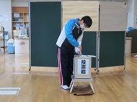 選挙は、選挙管理委員が設営した会場で行われました。市から借用した投票箱を利用したり、投票用紙の配付を一般選挙に準じた方法で行ったりと厳正に行われました。