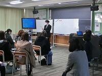 【タブレット研修】GIGAスクール構想により、授業での生徒のタブレット使用頻度は増えています。アプリを有効に使いこなすために職員は研修しています。本日は講師を招いて研修しました。