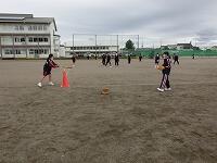 保健体育 ソフトボールの授業が行われました。左右に打ち分けることが課題でした。