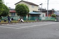 3年ぶりに親子奉仕活動が行われました。運動会を今週末に控え、校庭や校舎内の清掃を行いました。また、サイクリングロードの除草活動も行いました。