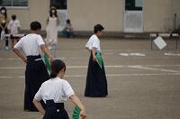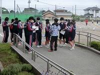 もうすぐ運動会予行です。係ごとに打合せを行い、練習が行われました。発送ラインでは、ピストルを鳴らすタイミングを練習したり、グラウンドにラインを引いたりしました。準備係では、種目ごとの物品のチェックをしたり配置を確認したりしました。放送係は機器の設置やアナウンスのタイミングを確認しました。審判係は、種目ごとに着順を決定するポイントや審判の内容についての確認をしました。各係で着々と準備が進んでいます。
