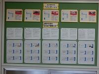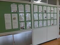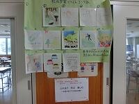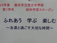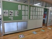 1年生は6月27日(月)に校外学習に出かけます。しおりの表紙絵応募作品やスローガンが掲示されています。