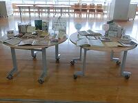 図書室では、教科に関連した図書紹介を行っています。現在、国語の教科書に関係した本や、理科の生物や物質に関連した図書が展示されています。生徒に人気のある図書紹介も続けて行っています。