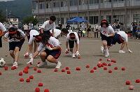 ひじょうに僅差でした。優勝した赤組に優勝カップが、青組にはPTA会長杯が送られました。