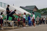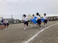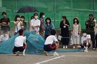 終日の曇り空でさわやかな風が吹く中、生徒は元気に演技を披露しました。学校運営協議委員の皆様にも運動会の様子を参観いただきました。