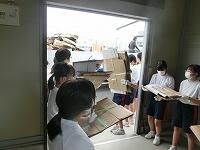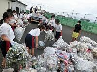 4月から6月までに集まった資源物を今日搬出しました。奉仕委員の生徒が、資源物をトラックへとリレーして積み込みました。生徒がリサイクル活動で集めたアルミ缶や保護者の皆様、地域の皆様が持ち寄ってくださった古新聞、古雑誌、ダンボール、アルミ缶などで大型トラックがいっぱいになりました。ご協力いただいた皆様、ありがとうございました。