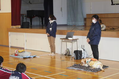 12月19日(木)の5,6時間目に第1学年の生徒が、東日本盲導犬協会の職員の方2名をお招きした盲導犬に関する講話をいただきました。