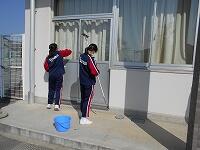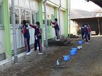 卒業を間近に、3年生が慣れ親しんだ校舎を清掃するボランティア活動を行いました。