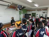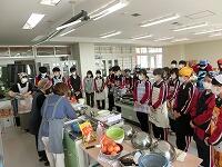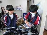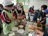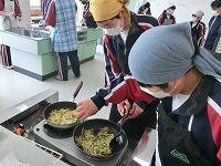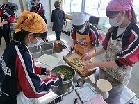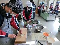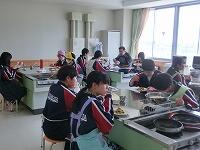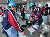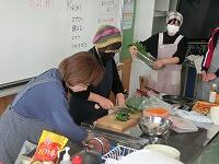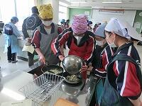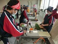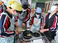 1年生は、家庭科の時間に調理実習を行いました。アシストネットによる講師を招いて、「チヂミ」をつくりました。具材のニラは、地元の特産品で、今朝取れたての一番ニラというものです。講師の先生から説明を受けた後、早速実習です。なかなか手際のよい生徒が多く、特製のたれでおいしく頂きました。