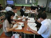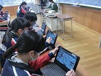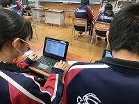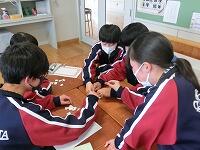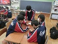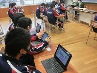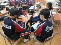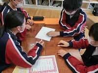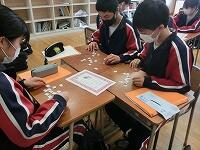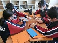 グループを組んで、クロスワードに取り組みました。密にならないように、タブレットに同じ画面が共有されます。グループのメンバーなら誰でも書き込んだり修正したりできます。瞬時に同じ画面が見えるので、離れた所でも相談ができます。易しいレベルから難易度を上げていくつかのレベルが用意されていましたが、お互いの知識を集めてクリアしていました。「こういう言葉あるよね」と相談したり調べたりして、語彙力が高まりました。