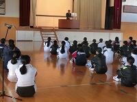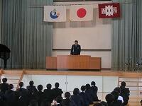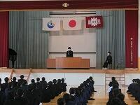 各学年代表による意見発表や、生徒会からの話、冬休み中の生活での注意点等の話がありました。