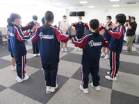 いろいろな自然災害が考えられますが、今回は竜巻を想定しての避難訓練を行いました。強い風やガラスが飛散することを考え、安全確保のための避難行動をとりました。