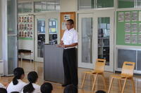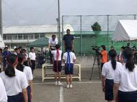水泳の池江璃花子選手を題材に「あきらめない心」の話がありました。さらに、自分の可能性を高めるために「普通にできることでも他の誰にもまねできないくらいしっかり取り組むこと(凡事徹底)」の大切さを伝えました。