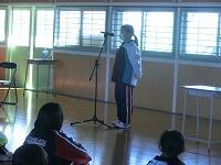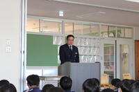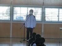 各学年の代表生徒による作文発表もありました。1年生からは中学生として初めての大きな行事を体験したこと、2年生からは立志や先輩方の卒業に向け2年生がいますべきこと、3年生の代表生徒からは受験や中学校生活締めくくりに向けての決意についてなどの話がありました。どの学年の代表も二学期を締めくくるにふさわしい発表でした。