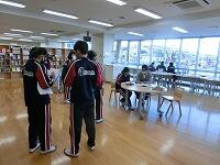ビブリオバトルが始まりました。前回のコミトレで、紹介したい本の説明やぜひ読んでもらいたい理由などを原稿にまとめ、アピールのしかたなどを各生徒が準備していました。本日はいよいよ各学級のグループごとにバトルが始まります。発表原稿は見ることなく、自分の言葉でアピールすることが約束です。どのくらいアピールすることができたのでしょうか。グループ代表者は、学級代表者戦へと進んでいきます。