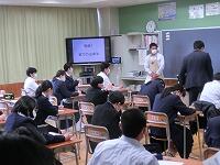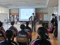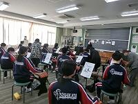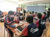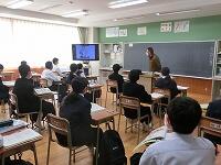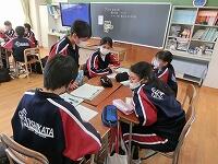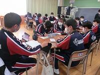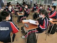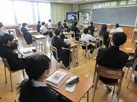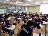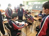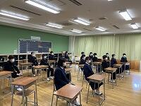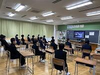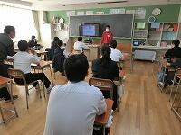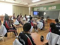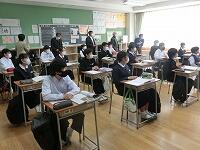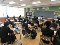 1年生の総合的な学習では、”ふれんど西方”の方を講師にお招きし、福祉の仕事について学びました。コロナ感染予防のため、会議室からのリモート授業で、各学級の生徒にお話ししていただきました。用意していた質問紙に答えたり、福祉の仕事の概要や具体的な仕事の内容などを聞いたりしました。介護福祉士になるための道筋などの説明もあり、福祉の仕事にたずさわることに興味がもてる内容でした。