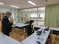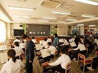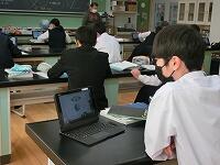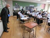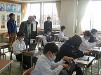 今回は、学校の様子を協議委員のみなさんに説明した後、実際に授業の様子を参観していただきました。特に、GIGAスクールの実施により、生徒が授業でタブレットを活用している場面を参観していただきました。
