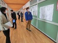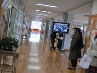 学年別に参観時間を変えて、授業参観が行われました。教室内の密を避けるため、授業の様子をモニターに映して、廊下の広いスペースでも見られるようにしての参観です。