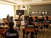 本日、5回目のミシンボランティアによる家庭科の授業が行われました。全員が保冷バッグを完成させることができました。布地からスタートしてバッグが完成したことで、一人一人が達成感を味わっていました。ボランティアの方がミシンの操作や縫い方の注意点を優しく丁寧に指導してくださったおかげです。ありがとうございました。