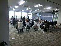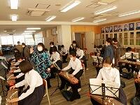 前回は1年生が箏の授業を受けましたが、今回は、昨年実施できなかった2年生が体験しました。練習では、一人一人に指導者の方が丁寧に対応してくださったので、生徒はすぐに理解して演奏できるようになりました。25面の箏による合奏もすばらしいものでした。