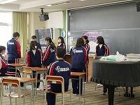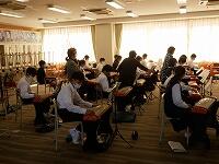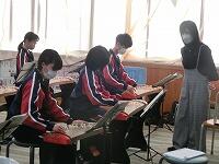 2年ぶりにアシストネットによるボランティアの方をお願いして、邦楽教室を行いました。今回は、本来の箏を少し小さくした文化箏を使っての授業でした。小学校6年生の時に少し体験してはいましたが、1時間の授業の中で、「さくらさくら」の旋律だけでなく、伴奏を加えて全体で合奏を行うまでに上達しました。