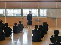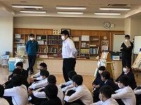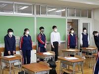 同窓会入会式を行いました。同窓会長様から、「西方中の同窓生として母校の活躍を応援してほしいこと。コロナによって行事が思うようにできなかったことを乗り越えてきたことやコロナによる社会での様子、ウクライナなどの世界情勢を例に、強い心をもってしっかりと成長してほしいこと。」などのお話をいただきました。続いて、代表幹事から「西方中の卒業生としての誇りをもち、同窓生としてしっかりと後輩達を支えていきたい。」という内容の誓いの言葉がありました。