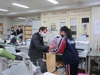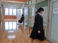 避難訓練が行われました。今回の訓練は、突然大きな地震が発生したことを想定して予告なしで行いました。清掃の時間中での緊急放送です。生徒は担当清掃場所で頑丈な机があるところばかりではありませんが、それぞれに危険から身を守る行動を取ることができていました。