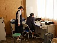 立会演説会の後、投票が行われました。選挙管理委員が公正な投票が行われるように立ち会っている中で、生徒一人一人が投票していました。