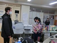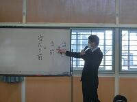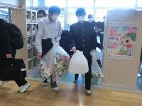 昼休みに、生徒会役員が送別の花を渡しました。代表生徒が、英語で先生との思い出を話し、別れを惜しんでいました。