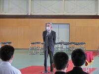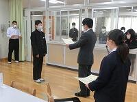 始業式にあたり、校長先生から進級することで、「学習」や「生活」からの学びがレベルアップすること。今年の目標に向かううえで、「こだわりをもつこと」「貫くこと」「極めること」の3つを大切にしてもらいたい。という話がありました。その後、学年代表生徒から、始業式にあたっての意見発表がありました。