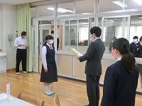 オンラインで全校集会(表彰)が行われました。表彰式の様子は、オンラインで各教室に配信しました。