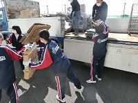 3年生は、卒業まで残りわずかとなりました。今日は県立高校一般選抜入試の日です。1・2年生は実力テストを行いました。学校に登校した3年生は環境整備の奉仕作業を行いました。お世話になった教室をきれいに清掃し、掲示物を外したり、机やいすの名前をはがしたりしました。続いて、鉄柵のペンキ塗りや資源物の搬出を行いました。資源物のアルミ缶や古新聞、ダンボール、雑誌などは、昨年暮れからの蓄積があり、かなりの量の搬出となりました。日頃からご協力いただいたPTAの方や地域の方に感謝いたします。