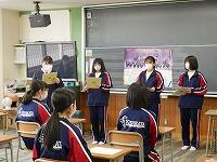 令和4年度の生徒会役員を選出する立会演説会が行われました。立候補者が抱負を演説した後、生徒からの質問の時間がとられました。立候補者は質問に対して自分の考えを堂々と発表していました。